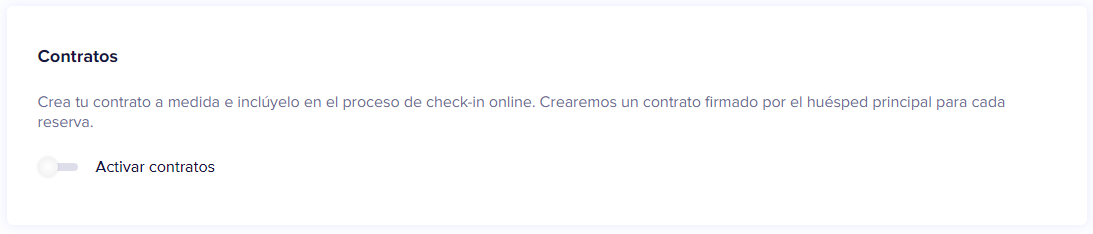 Una vez activada la herramienta, tus huéspedes recibirán el contrato durante el check in online, donde podrán visualizarlo antes de firmar el documento y finalizar el check in online. Una vez firmado, el contrato aparecerá en la pestaña de documentos en la sección "contratos".