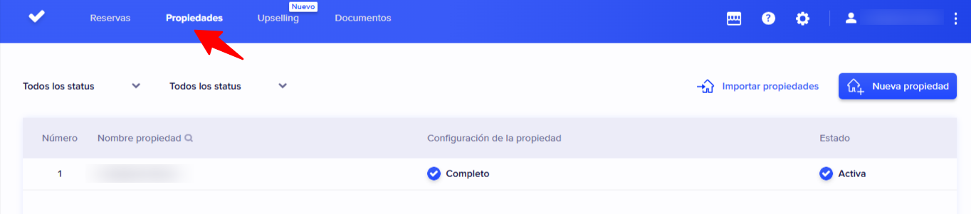 Paso 1. Inicia sesión en tu cuenta de Chekin y haz clic en "Propiedades".