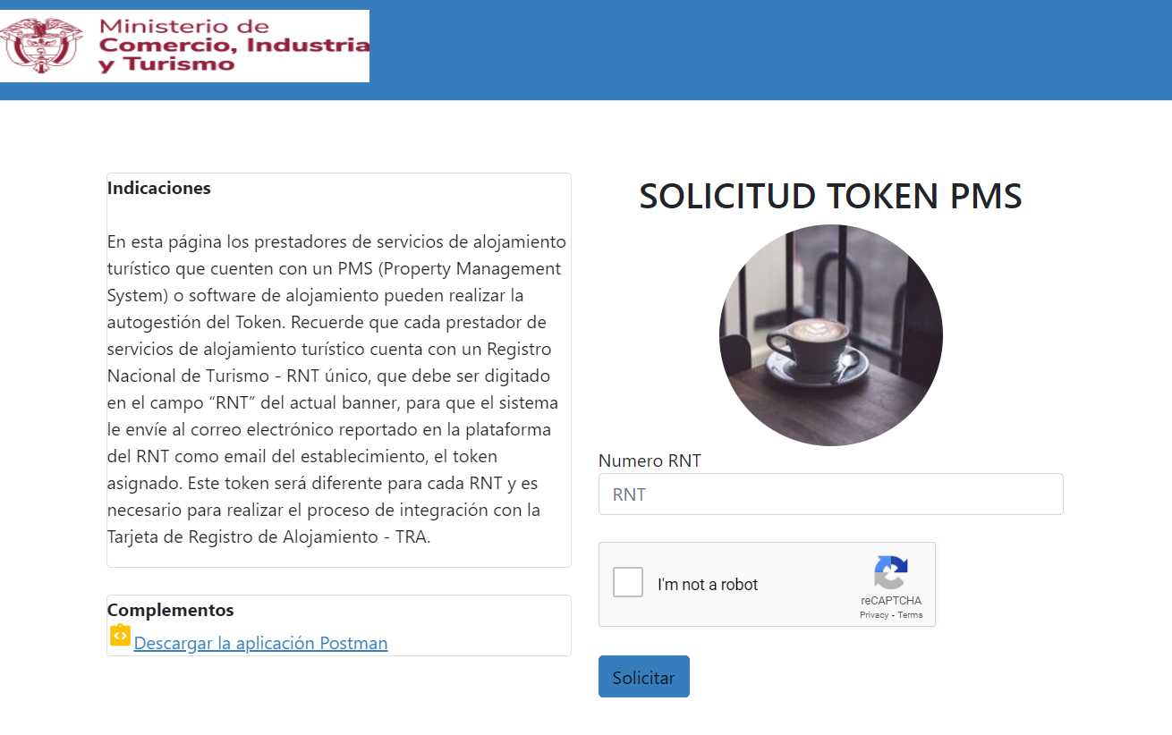 6 - Para generar el token que deberás agregar al campo 'Token de autorización TRA'. Para obtenerlo visita la página "Solicitud de token PMS" a continuación e ingresa el número RNT de la propiedad. La TRA enviará el token a su correo electrónico. Pulsa este botón para acceder al trámite;