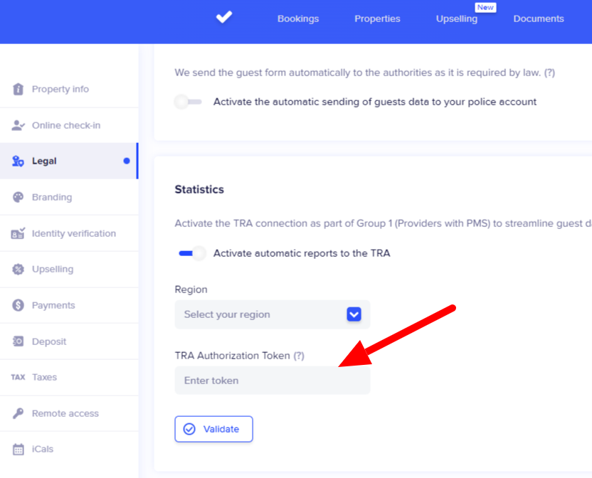 4 - Aparecerán los campos "Región" y "Token de autorización TRA".