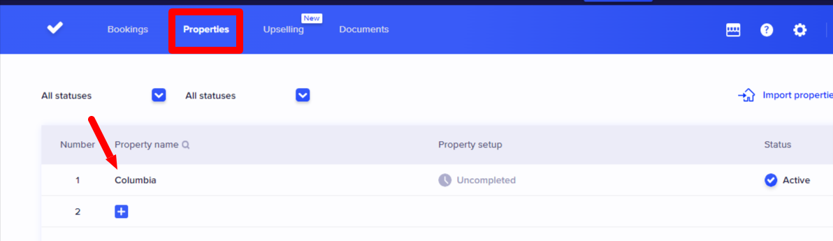 1 - Inicia sesión en tu panel de Chekin y haz clic en Propiedades, luego haz clic en la propiedad en la que desea activar TRA.