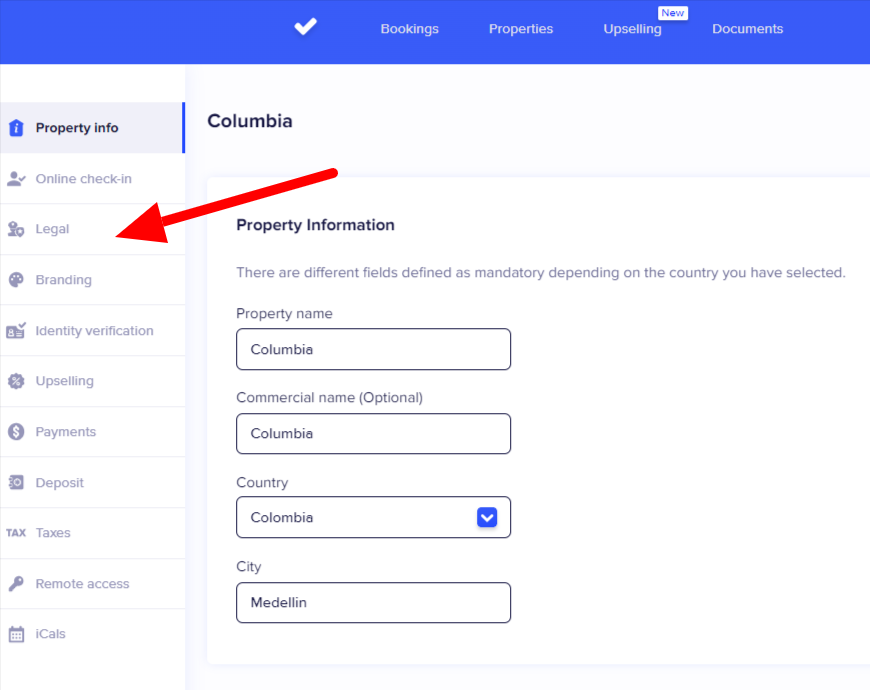 2 - Haz clic en 'Legal' en el menú de la izquierda.