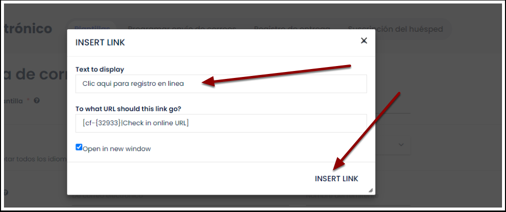 Una vez creados los campos personalizados se crearán de forma automática los Placeholders (que deben configurarse en la plantilla para que se envíen las URLs a los huéspedes).