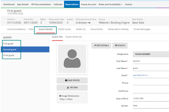 ¡Sí! Cada vez que un invitado complete el registro en línea, podrá ver sus datos no solo en CheKin Dashboard, sino también en su cuenta de Apaleo en la pestaña Detalles del invitado de la sección de reserva: