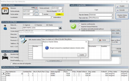 Tanto si hemos creado la reserva directamente en el PMS como la hayamos recibido por el sistema de conexión que tengamos configurado (Channel, Motor de Reservas) la reserva entra en el sistema de recepción online siempre y cuando dispongamos de un correo electrónico para poder enviar el correo de Check-in.
