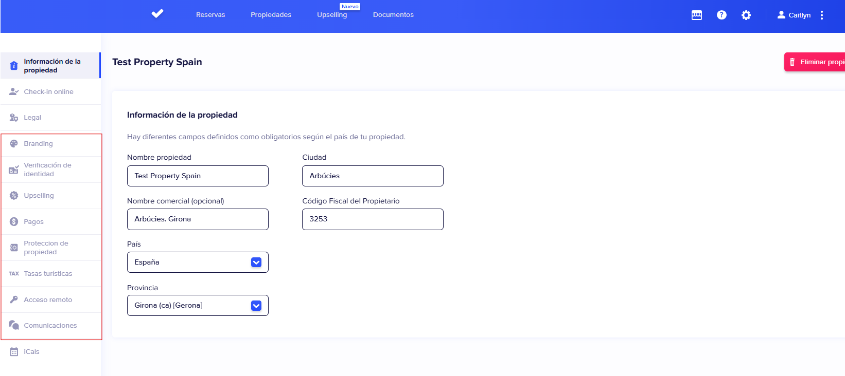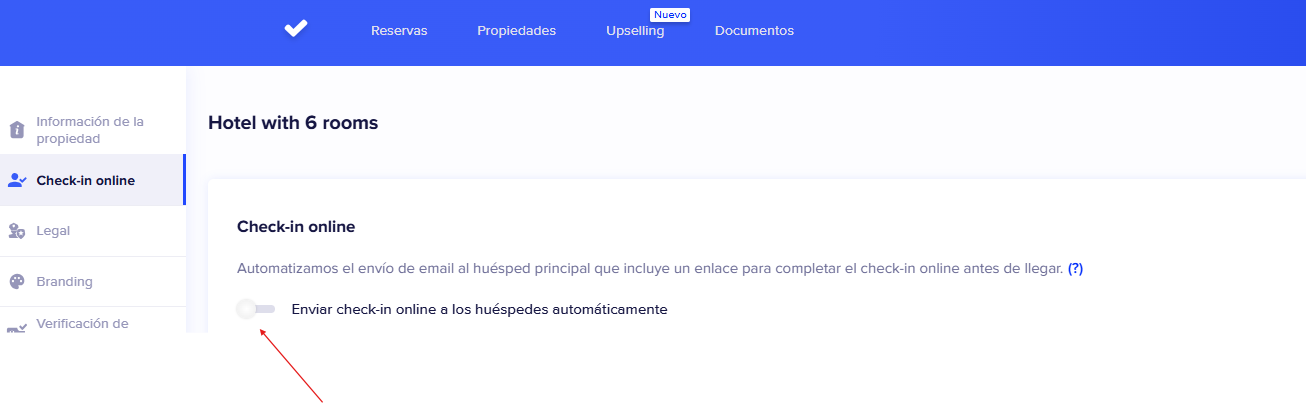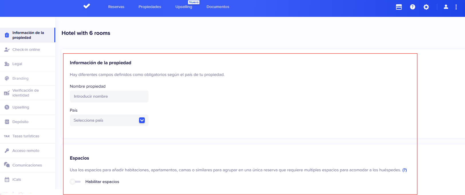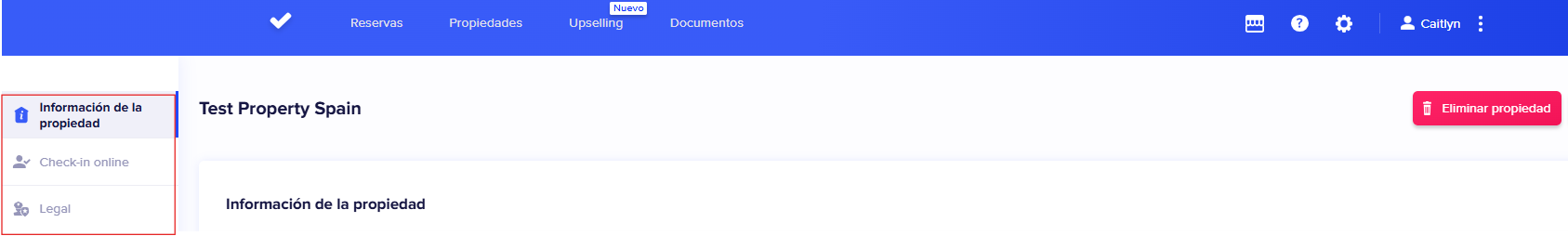 12. Dirígete a Propiedades, selecciona una propiedad haciendo clic en su nombre, y completa los siguientes apartados: Información de la propiedad, Check-in online, y Legal. Ten en cuenta que deberás realizar estos pasos para todas tus propiedades.