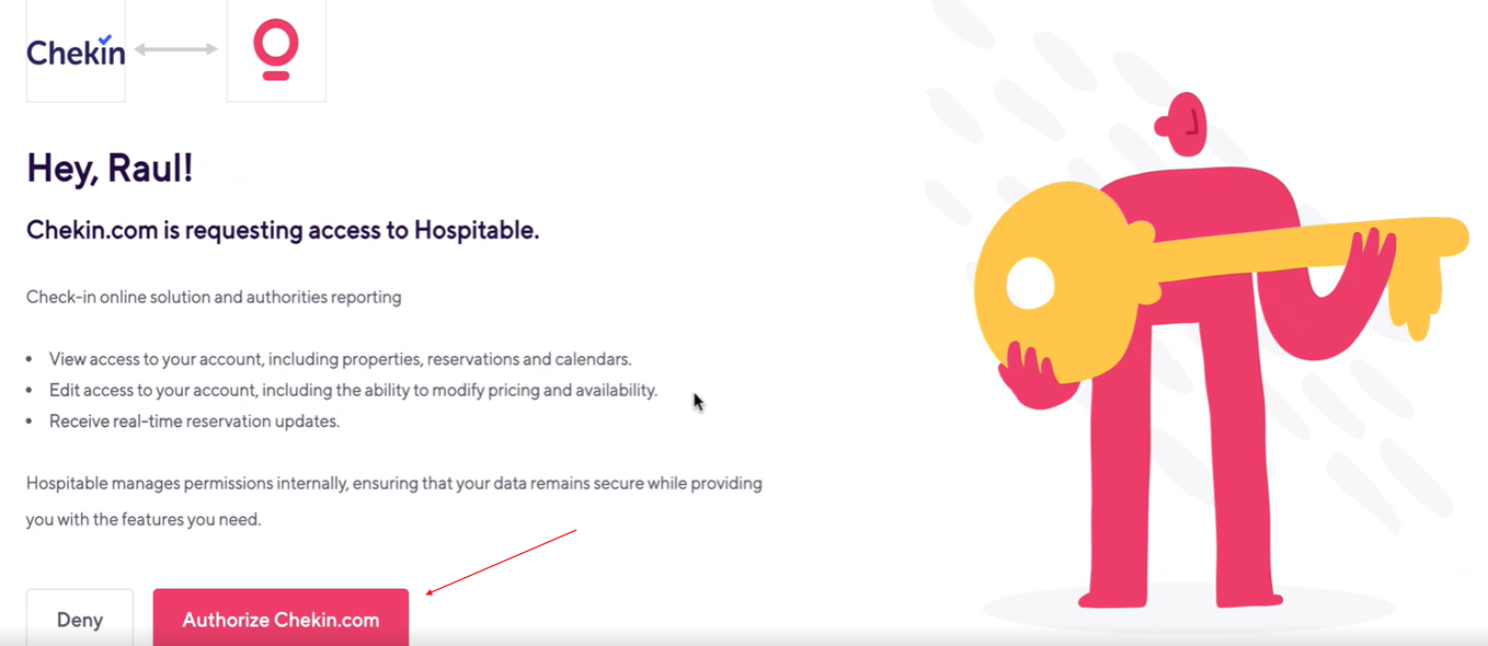 8. Una vez inicies sesión en Hospitable, debes hacer clic en ´Authorize Chekin.com´