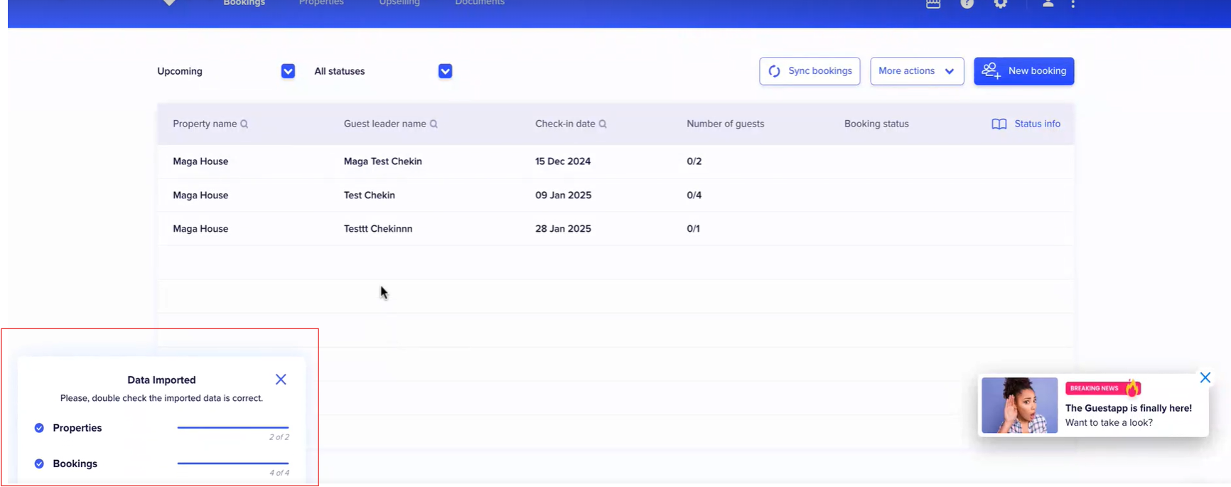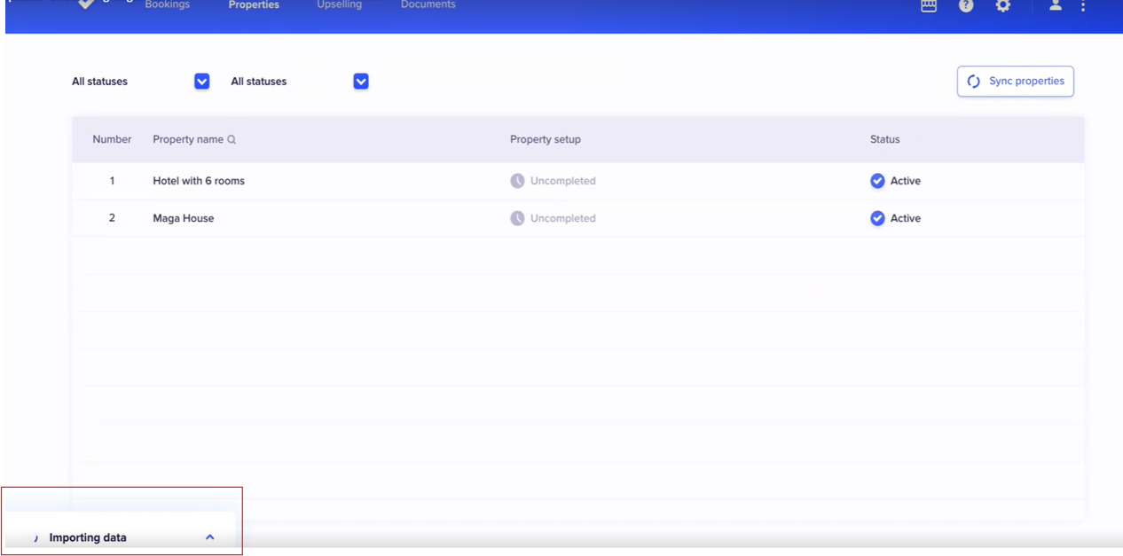 10. Después de unos minutos, serás redirigido al dashboard de Chekin, donde podrás comprobar que las reservas y las propiedades están siendo importadas.