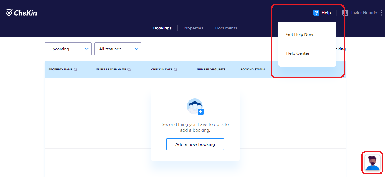 Si tienes algún problema o duda durante tu uso de Chekin, o experimentas cualquier error, puedes contactarnos desde el dashboard, haciendo click en "Ayuda" en la barra superior