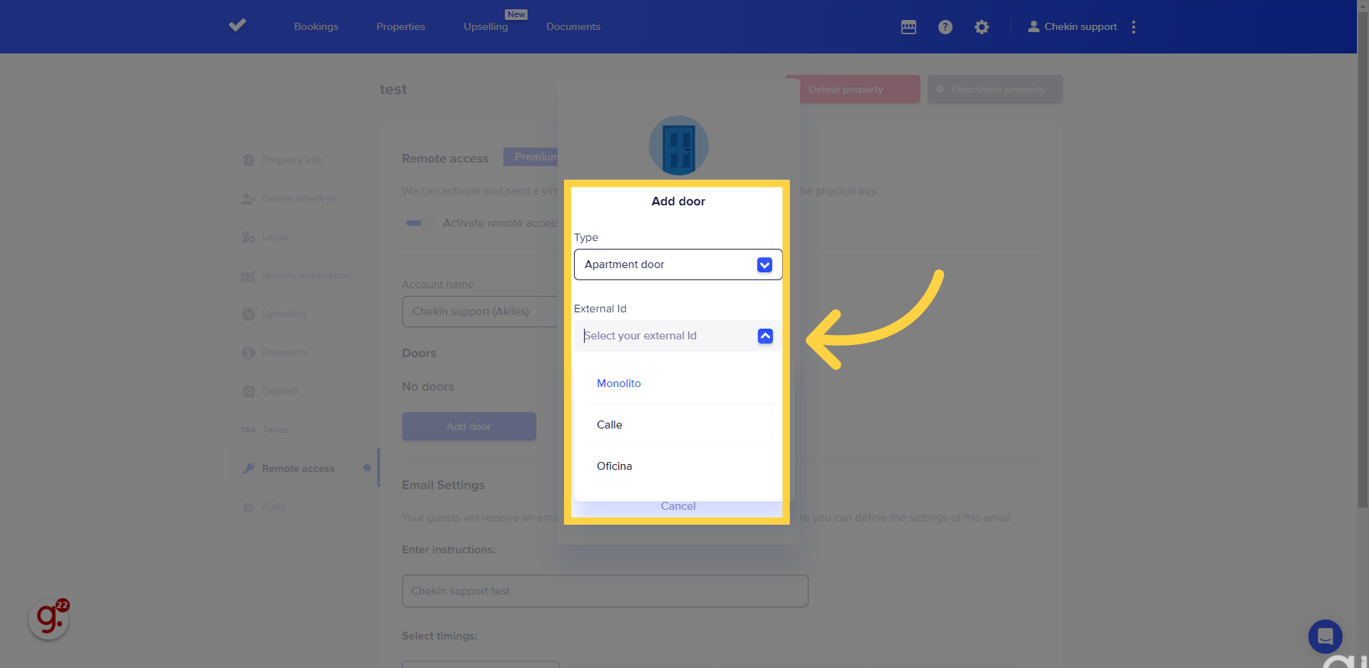 Nota: si tienes una cuenta de tipo hotel, tienes la posibilidad de añadir una puerta común y varias puertas privadas vinculadas a tus espacios.