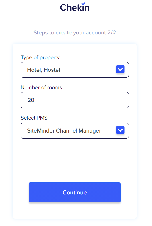 Nota: si ya tienes una cuenta de Chekin creada, ponte en contacto con el soporte para obtener más ayuda.