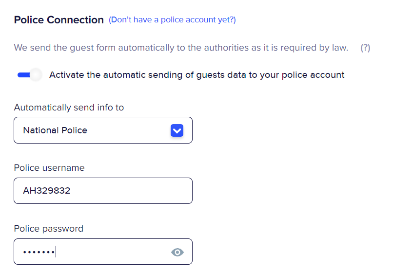 Añade también las credenciales de tu cuenta de la policía por si la ley de tu país te obliga a enviar datos a las autoridades: