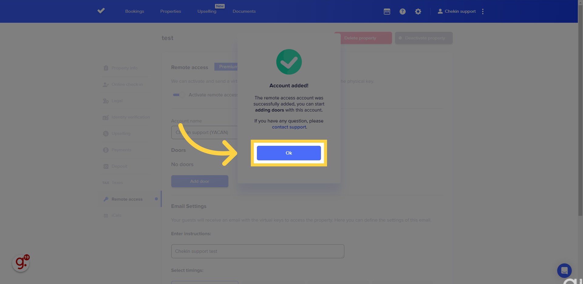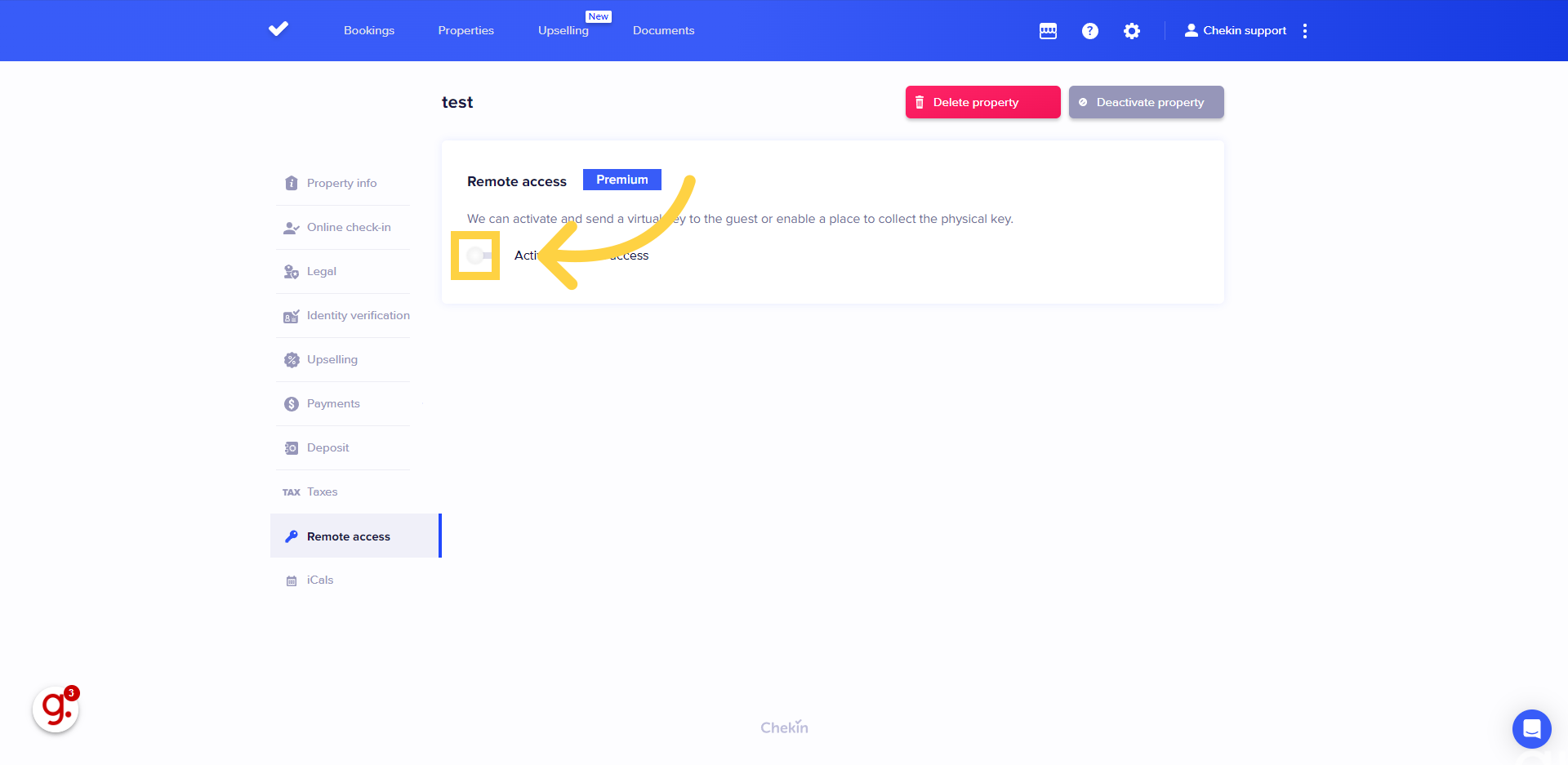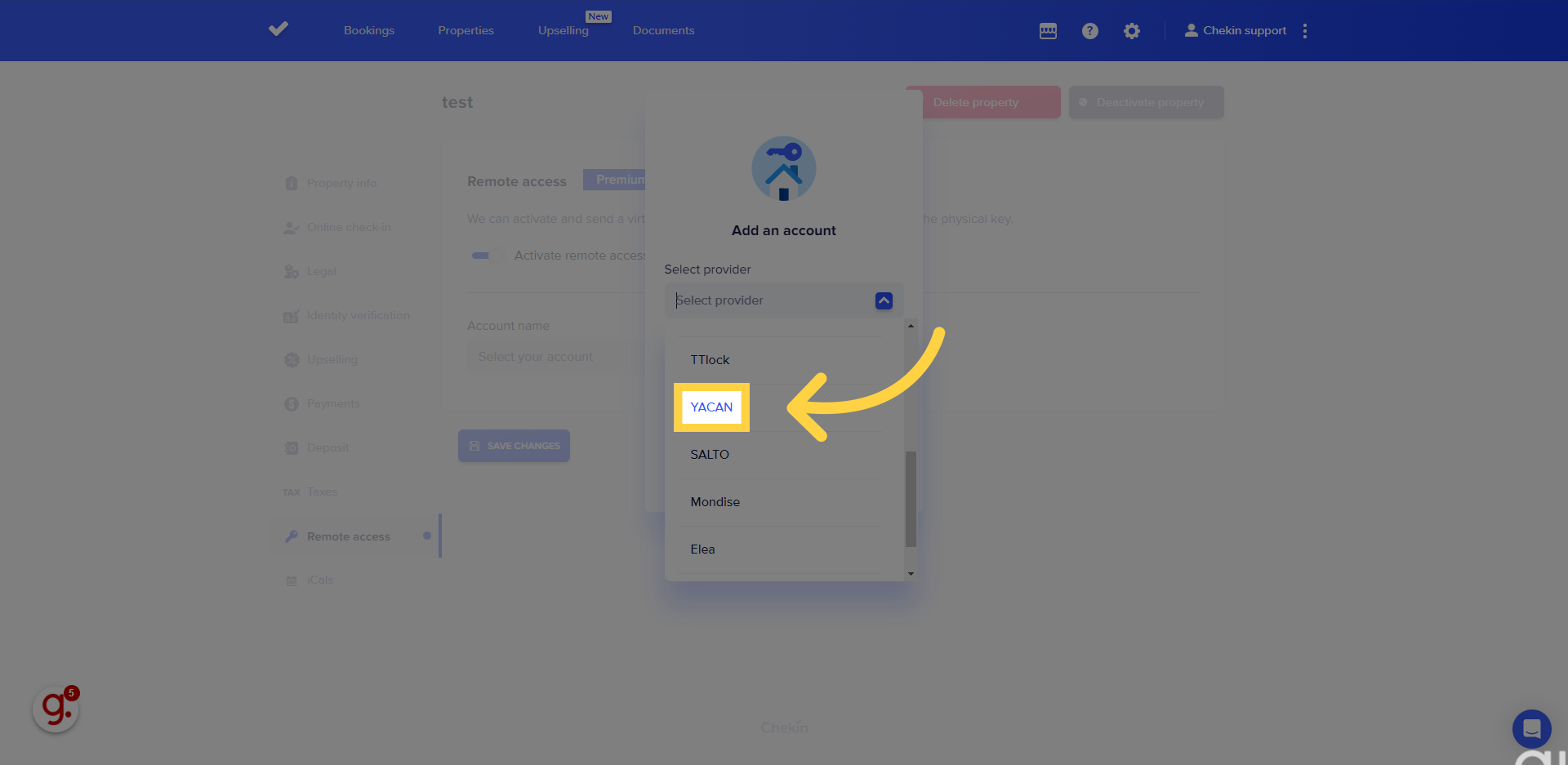 Puedes conectar tu cuenta de Chekin con YACAN desde el apartado Acceso Remoto dentro de tu propiedad