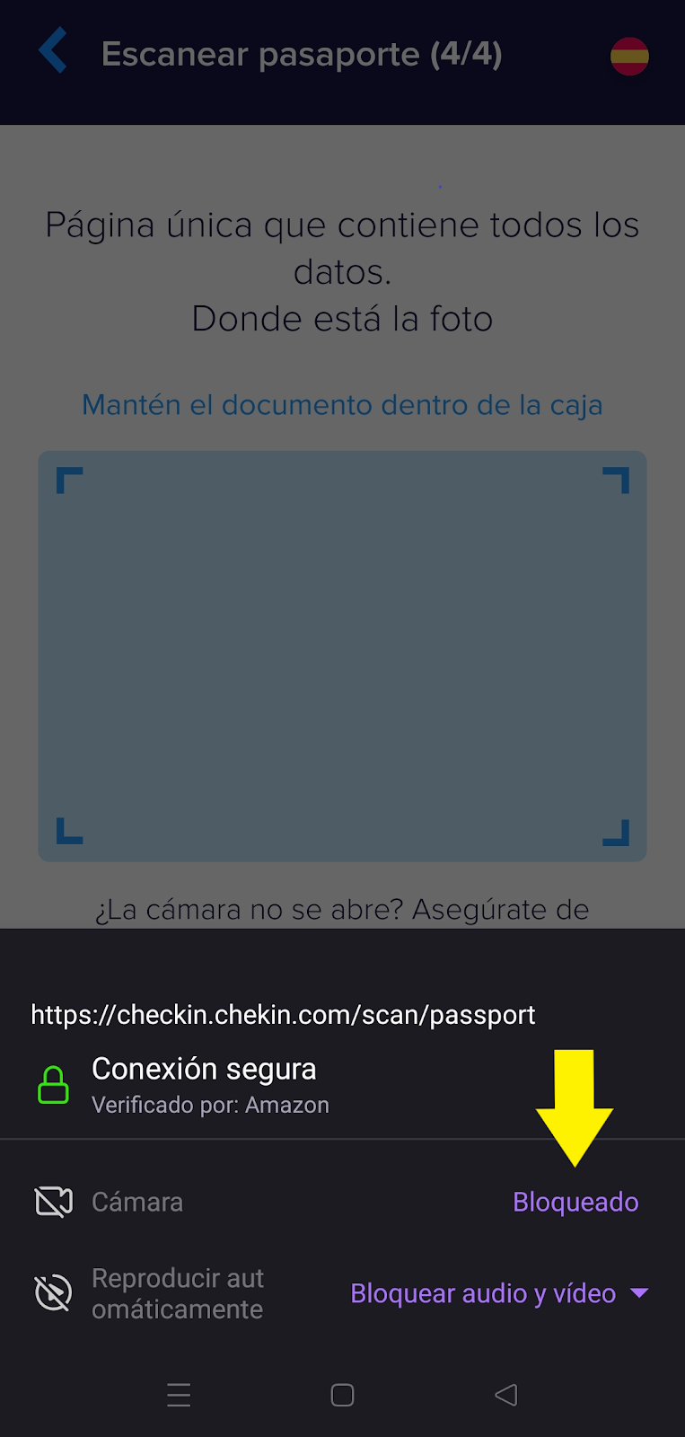 Actualizado hace más de 2 añosCuando inicias sesión en tu cuenta de Chekin y accedes al dashboard o vas a realizar el registro de huéspedes con el escáner, saldrá una notificación para que permitas el acceso a la cámara.