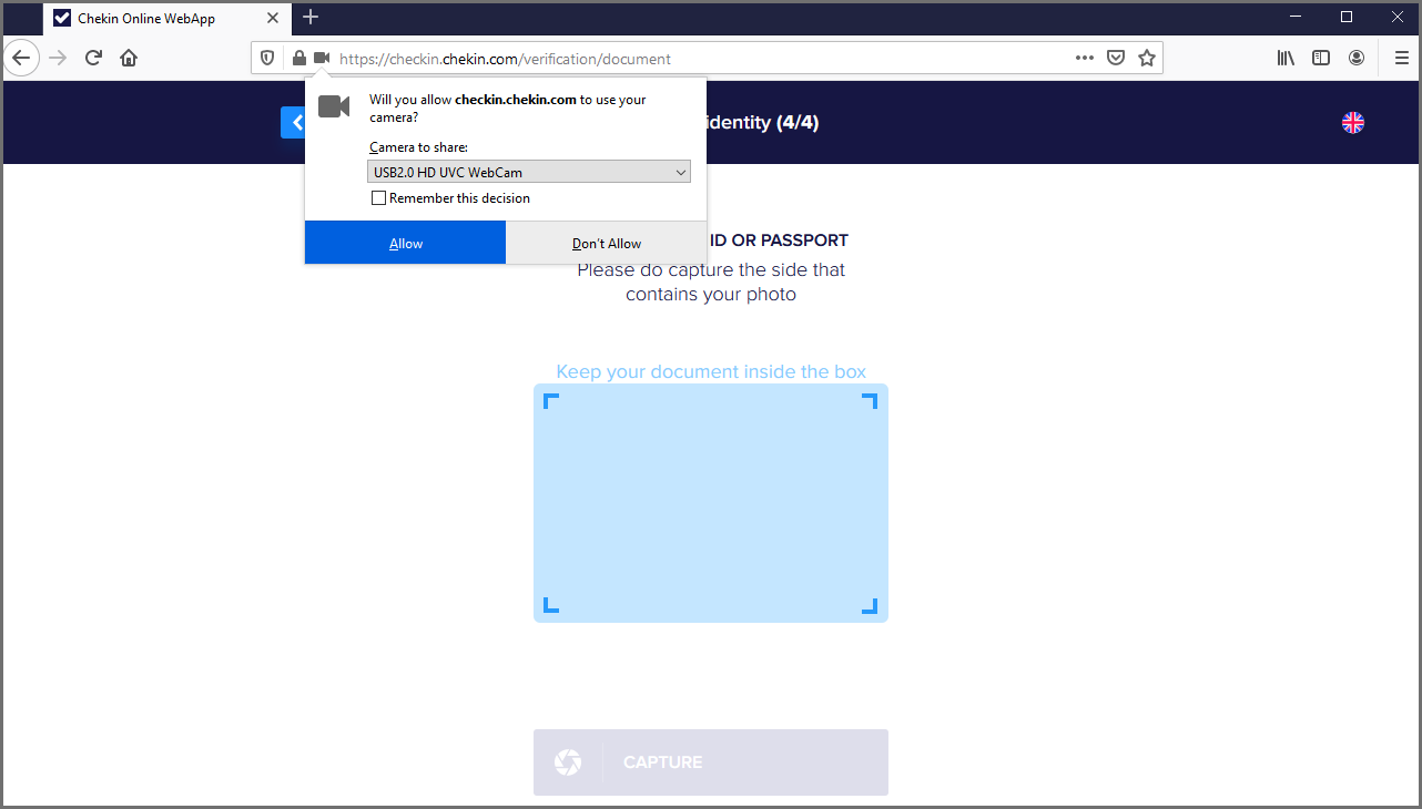 Cuando salga la notificación de que Chekin quiere utilizar tu cámara, haz clic en "permitir".