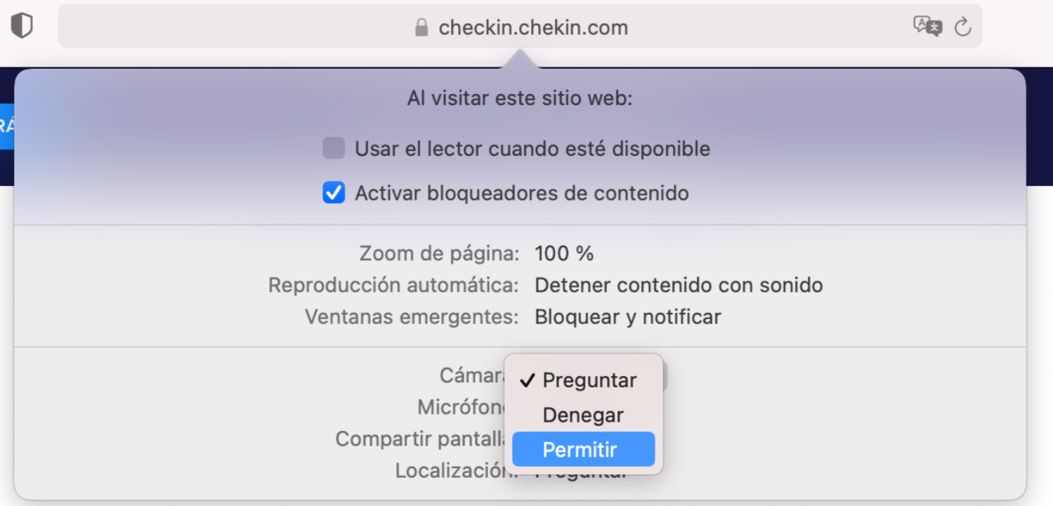Permitir el acceso a la cámara en Safari | Centro de ayuda de Chekin