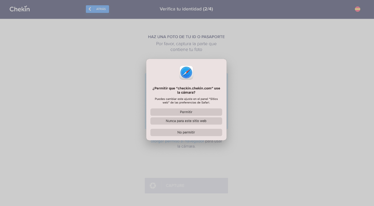 Cuando salga la notificación de que Chekin quiere utilizar tu cámara, haz clic en "permitir".