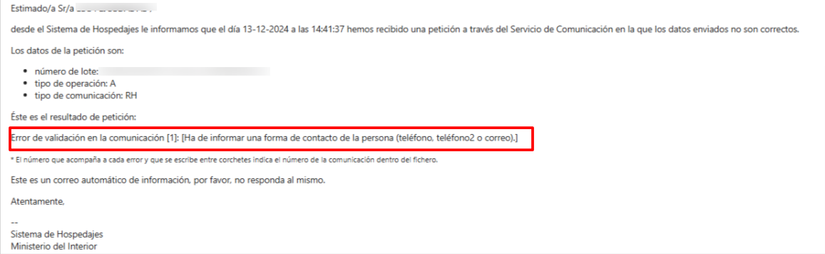 Si recibes un correo electrónico de SES Hospedajes indicando un error, generalmente se refiere a la transmisión de la reserva en sí a SES. "RH" significa "Reserva de Hospedaje". Este aviso suele estar relacionado con reservas procedentes de Airbnb, ya que esta plataforma no proporciona direcciones de correo electrónico de los huéspedes.