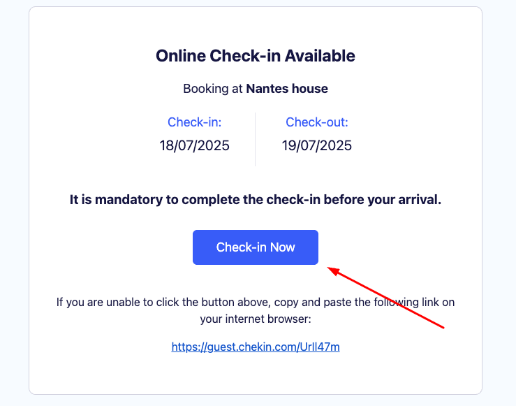 1 - El huésped recibe un enlace de verificación y comienza con un simple clic.