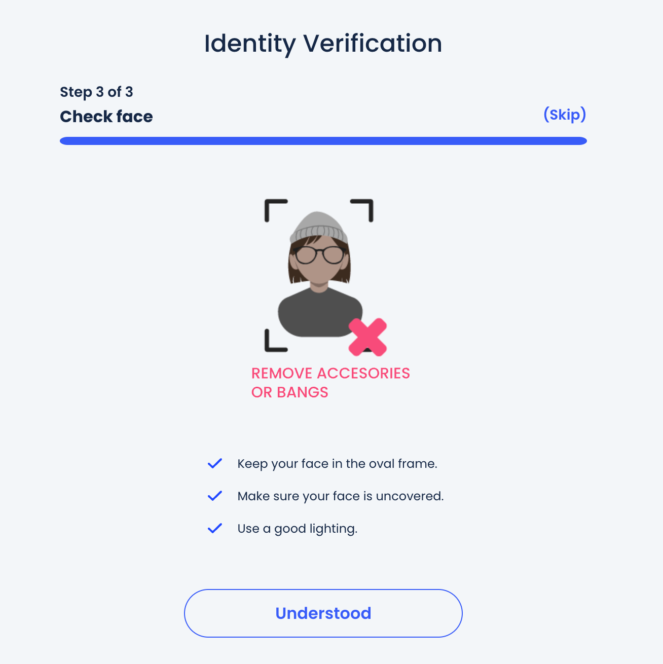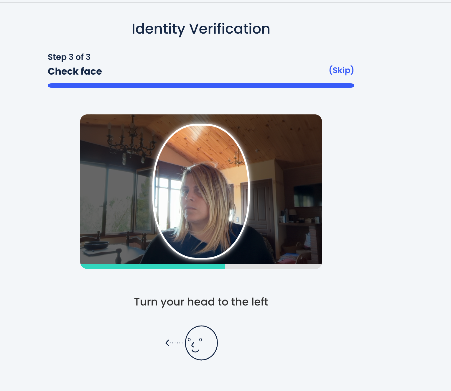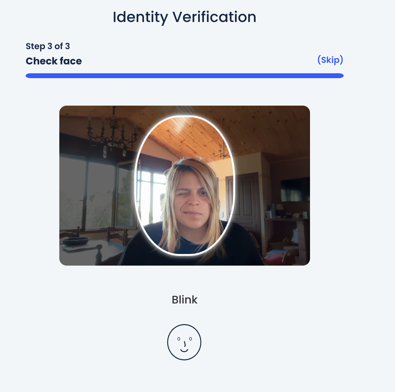 El huésped es guiado a través del reconocimiento facial y una prueba de vida.